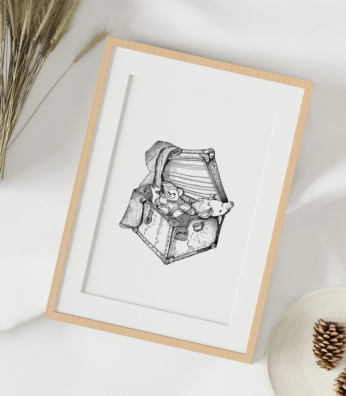 Coffre à jouet d'enfant - dessin à l'encre
